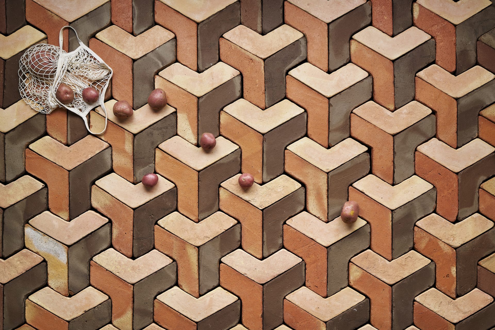 Ένας πρωτότυπος συνδυασμός πλακιδίων από τερακότα που θυμίζει τις δελεαστικές φιγούρες που σχηματίζει ένα καλειδοσκόπιο. Η οργανική εμφάνιση χρησιμεύει για να τονίσει και να αναδείξει τις χρωματικές παραλλαγές των κομματιών με ιδιαίτερα ελκυστικό τρόπο.