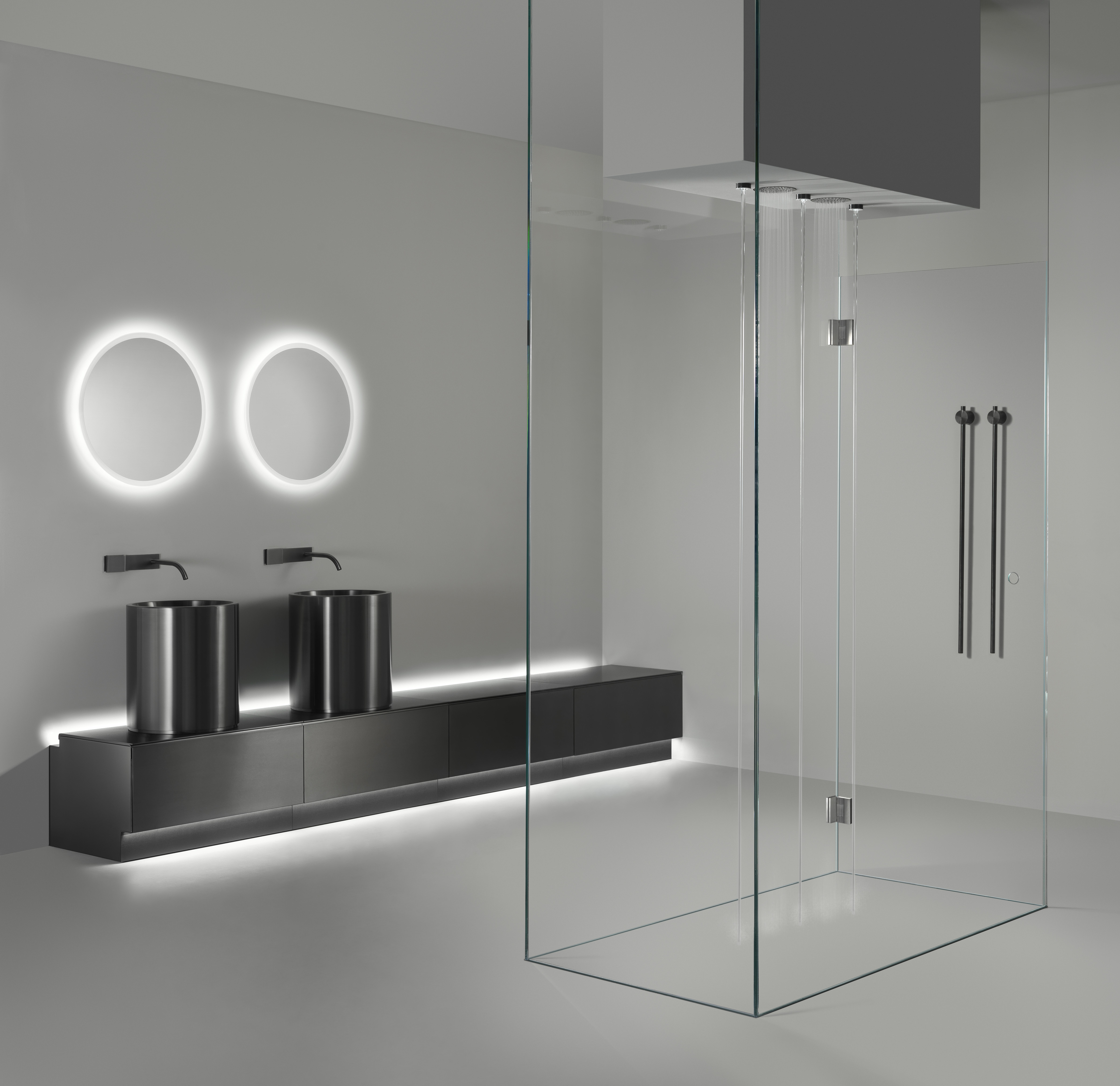 Το ABACO είναι εξ ολοκλήρου κατασκευασμένο από ανοξείδωτο χάλυβα, ένα υλικό υψηλής απόδοσης, υγιεινό, αντιβακτηριδιακό, πλήρως ανακυκλώσιμο και ιδανικό για το περιβάλλον του μπάνιου. Η αντοχή του στο χρόνο είναι η ουσία της ποιότητας και της οικολογίας.