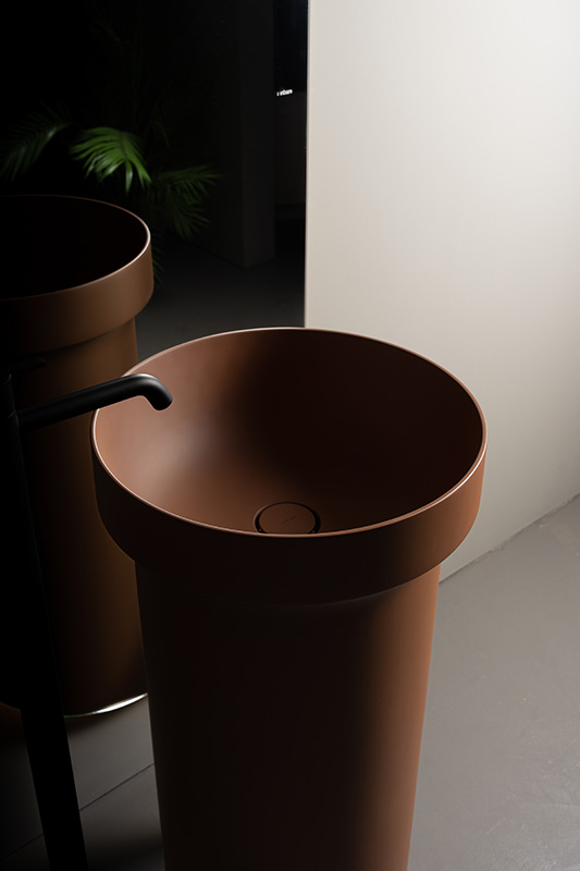 Arcv ελεύθερης τοποθέτησης νιπτήρας. Διατίθεται σε ματ στερεά επιφάνεια, επίστρωση χρώματος UHS (60 χρώματα) ή μάρμαρο.