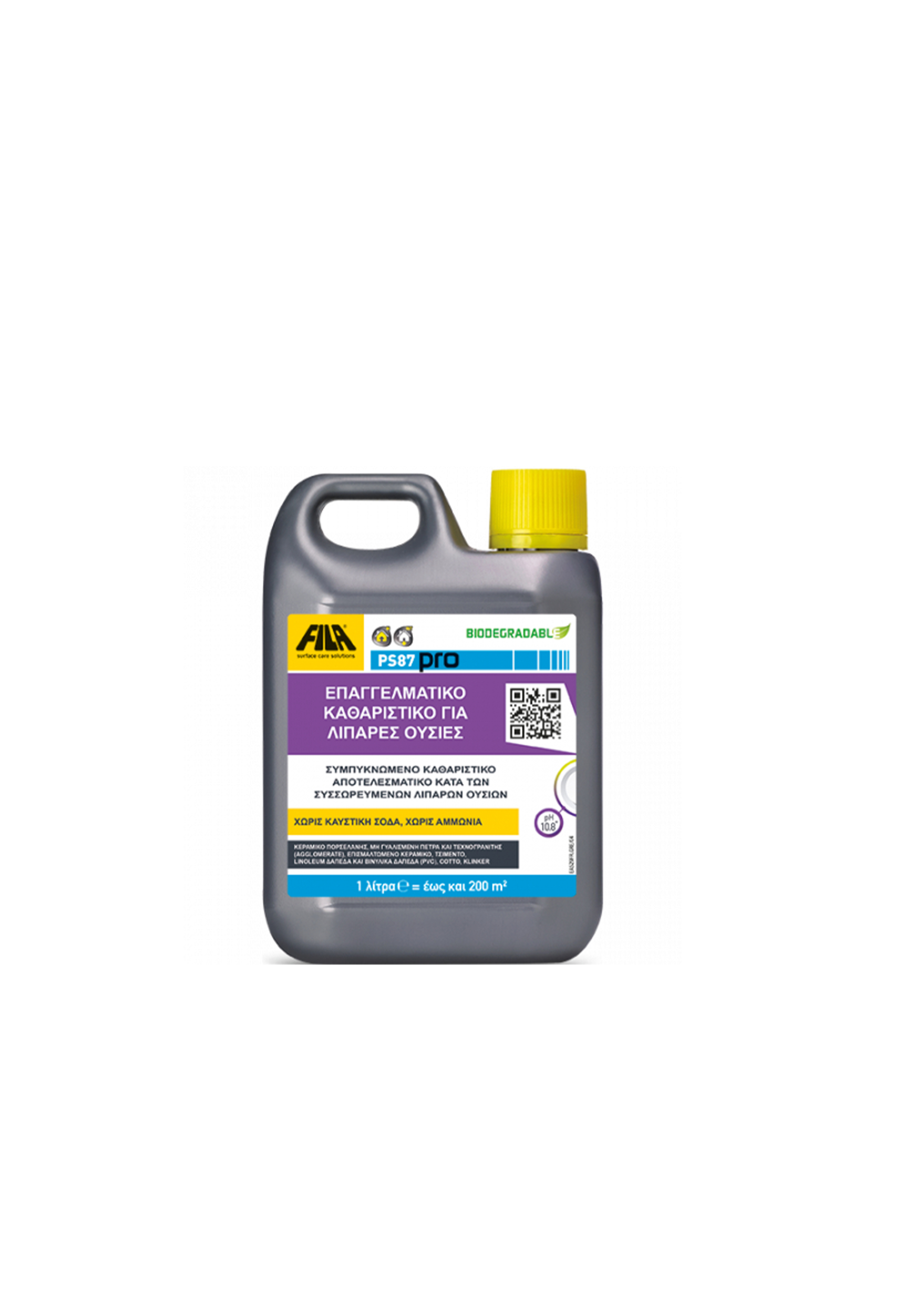 • Όταν αραιώνεται, καθαρίζει και απομακρύνει το λίπος από βρώμικα δάπεδα από πλακάκια πορσελάνης, κεραμικά πλακάκια, φυσική πέτρα, τερακότα και σκυρόδεμα.