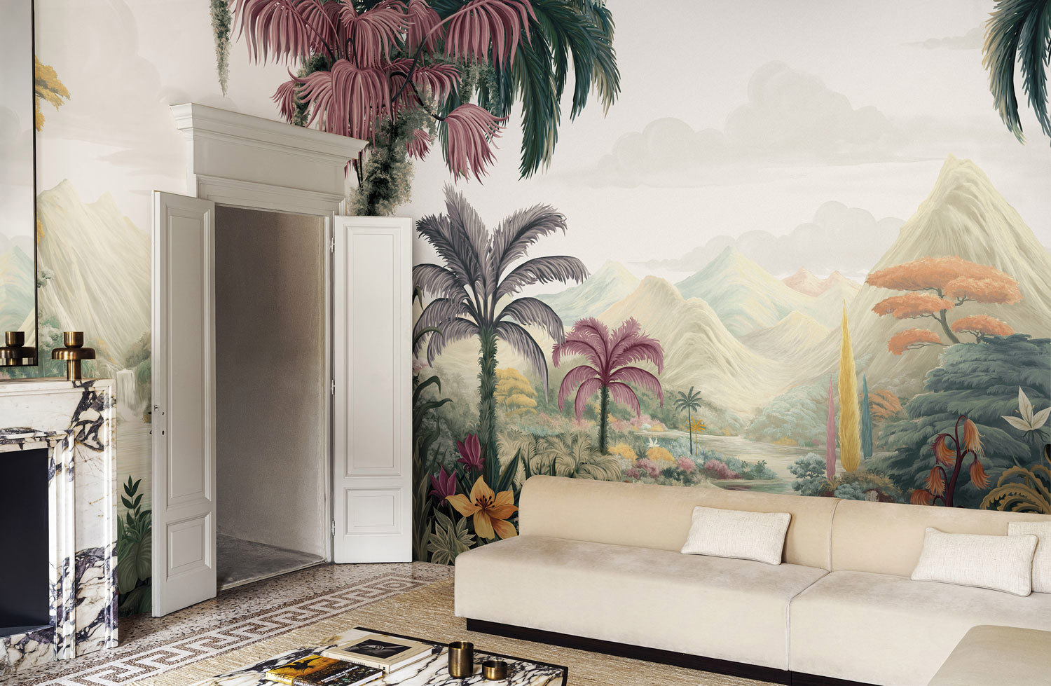 These wallpapers are genuine works of art, showcasing captivating landscapes that conjure the unique atmospheres of faraway lands. The collection draws inspiration from diverse places and cultures: the mystique of India and Brazil, the timeless serenity of Tuscany, the enchanting allure of Iceland and the African savannah, the grandeur of mountain peaks, and the shimmering magic of the Venetian lagoon. Each design pays homage to the natural beauty and evocative power of our planet. Imagine yourself standing amidst the vastness of sequoia forests or soaring above the crystal-clear waters of hidden paradises.