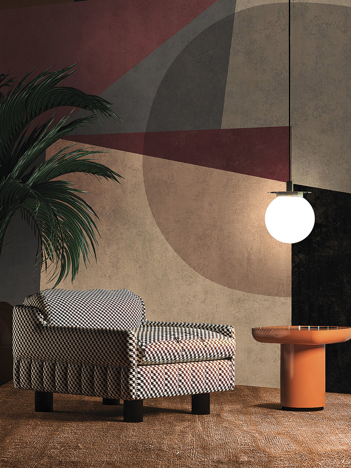 The common thread that binds the new wallpapers is the journey and its narration, deliberately universal, presented through new figurative languages with extensive experimentation in the use of colour, evident brushstrokes, and material, which becomes the protagonist of the decoration.