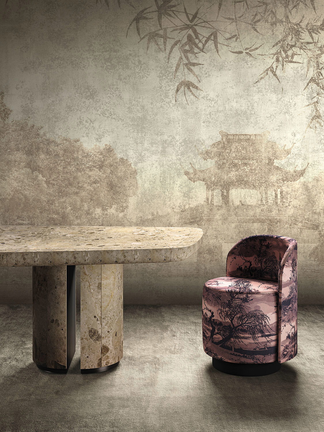 The common thread that binds the new wallpapers is the journey and its narration, deliberately universal, presented through new figurative languages with extensive experimentation in the use of colour, evident brushstrokes, and material, which becomes the protagonist of the decoration.