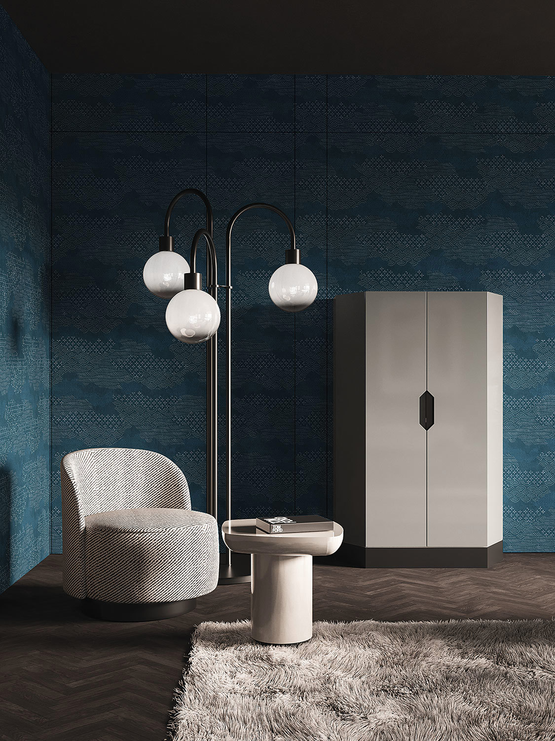 The common thread that binds the new wallpapers is the journey and its narration, deliberately universal, presented through new figurative languages with extensive experimentation in the use of colour, evident brushstrokes, and material, which becomes the protagonist of the decoration.