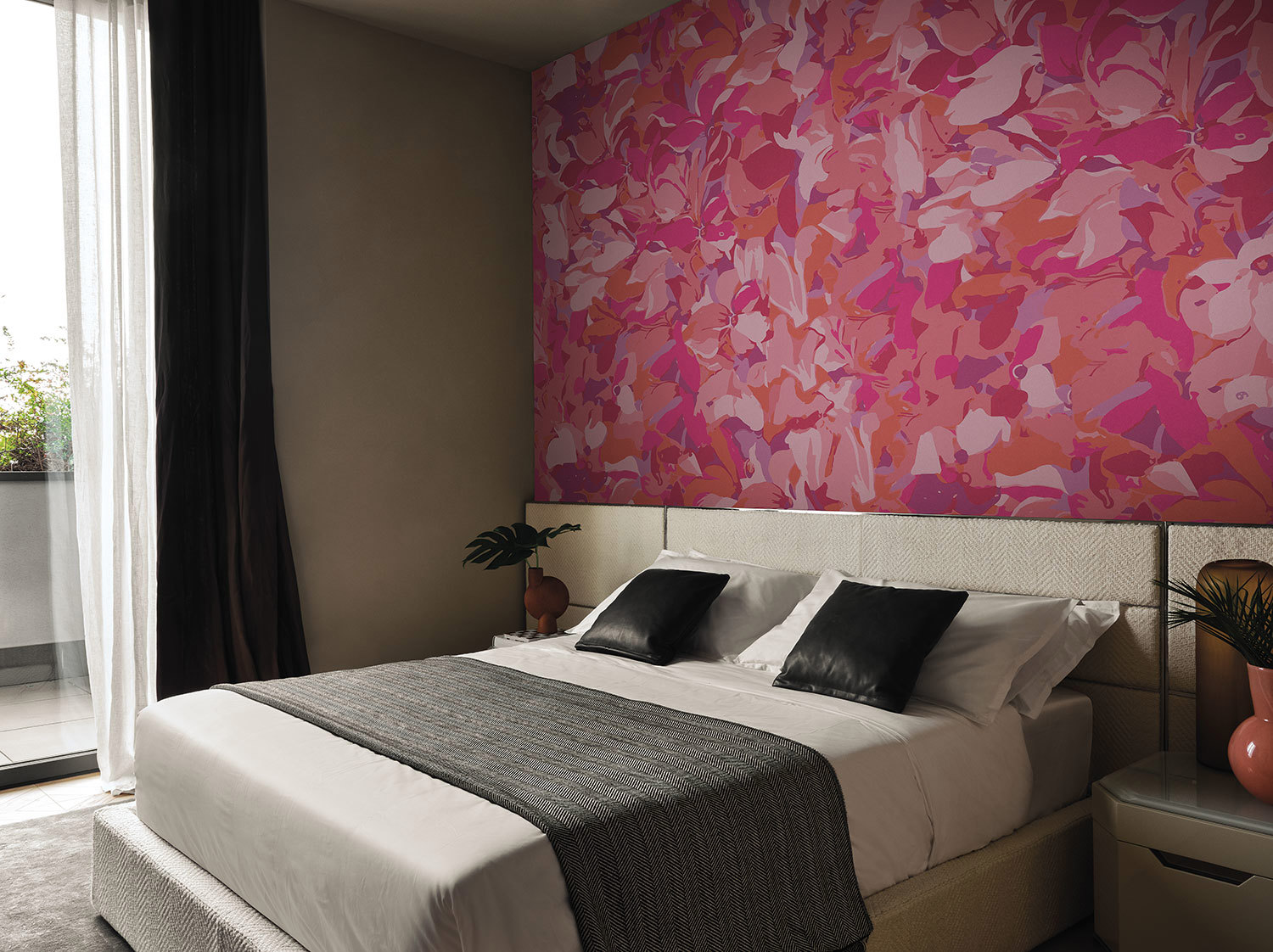 A path that emphasizes the eclecticism and universal nature of taste; an itinerary that crosses Europe, Asia, and Africa, leaving indelible traces in the graphics that can be seen within the collection. The search for extreme depth in the composition is able to develop over large surfaces by skilfully mixing blush, burnt, rusty tones, macro geometry, lace, tarot cards, and botanical elements. The result is an almost primordial elegance, reinterpreted through the colours of the earth with tribal accents, in which each subject is embellished and sophisticated. The graphics become a substantial element of the architectural project; a story to dress the environments and make them evocative.