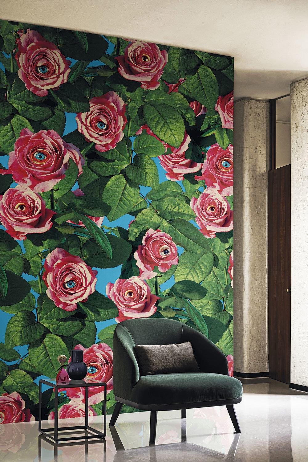 Londonart’s LUXURY SHIT Collection is the first wallpaper capsule designed by TOILETPAPER and contains the iconic subjects and the best sellers of the pictures taken by Maurizio Cattelan and Pierpaolo Ferrari. Born from the collaboration between the contemporary artist and the photographer, TOILETPAPER is a magazine made up entirely of images created by the two artists with the idea of creating a new concept between artistic language and advertising language, art and fashion. Vibrant, provocative, and irreverent images that combine the layer of commercial photography with pop suggestions, surrealist evocations, sexual obsessions, ambiguities, creating complex orchestrations that ironize showing a new exploration of the world of art. Each image comes from an intuition, even a simple one, to then become a complex composition of ideas, people, and objects that build a sort of mental outlet. The multiplicity of creativity of the designers and a vision in constant ferment has made TOILETPAPER a true brand with a precise and recognizable identity. LUXURY SHIT for Londonart is not only a selection of beautiful images, but a story that connects different subjects to bring out a complete vision of TOILETPAPER’s visual nonconformity. Each wallpaper has an immediate impact, so as not to get lost among all the others; the colour and the situation keep the spectator glued to it. A sequence that embraces everything, an inspiration that draws from different hemispheres of creativity, from everything that surrounds us and that deserves a new look, an unexpected point of view. So a rain of popcorn, a sea of spaghetti and crisps, pierced macro flowers, mirrors that reflect the sky, giant mouths, a gun that drips gold, become decor, because everything in the TOILETPAPER world becomes possible and real, daily and concrete in its absurdity. The wallpapers of LUXURY SHIT adapt to any environment, accentuating the pop and democratic tone of contemporary environments, or, in perfect contrast, taking the edge off the classic and extra-luxury environments