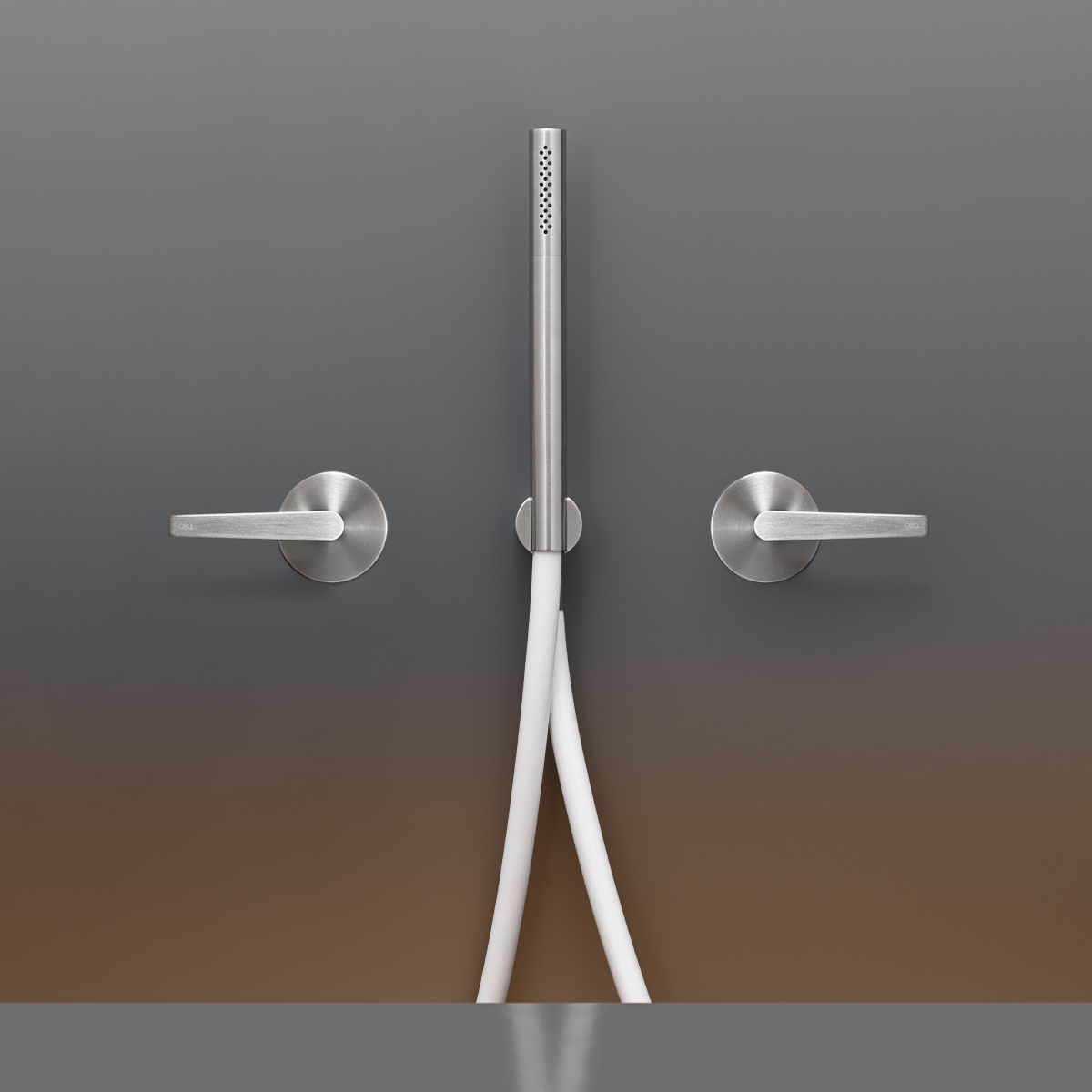 Επίτοιχο σετ 2 κλιμακούμενων αναμεικτών για μπανιέρα/ντους με κυλινδρικό ντους χειρός Ø 18 mm.