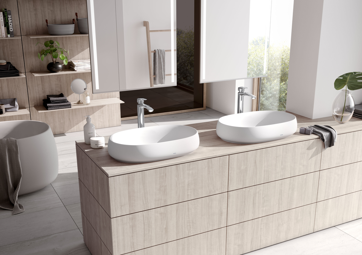 The CE vessel is made of the newly developed Galalato, a composite material. It looks like matte ceramic, and is extremely stable and durable. This vessel is available in two shapes: oval and rectangular. Its streamlined design is both delicate and modern.