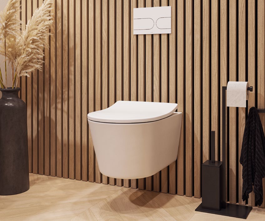 - Rimless Design: Ceramic toilet bowl without hard-to-reach areas along the top edge.