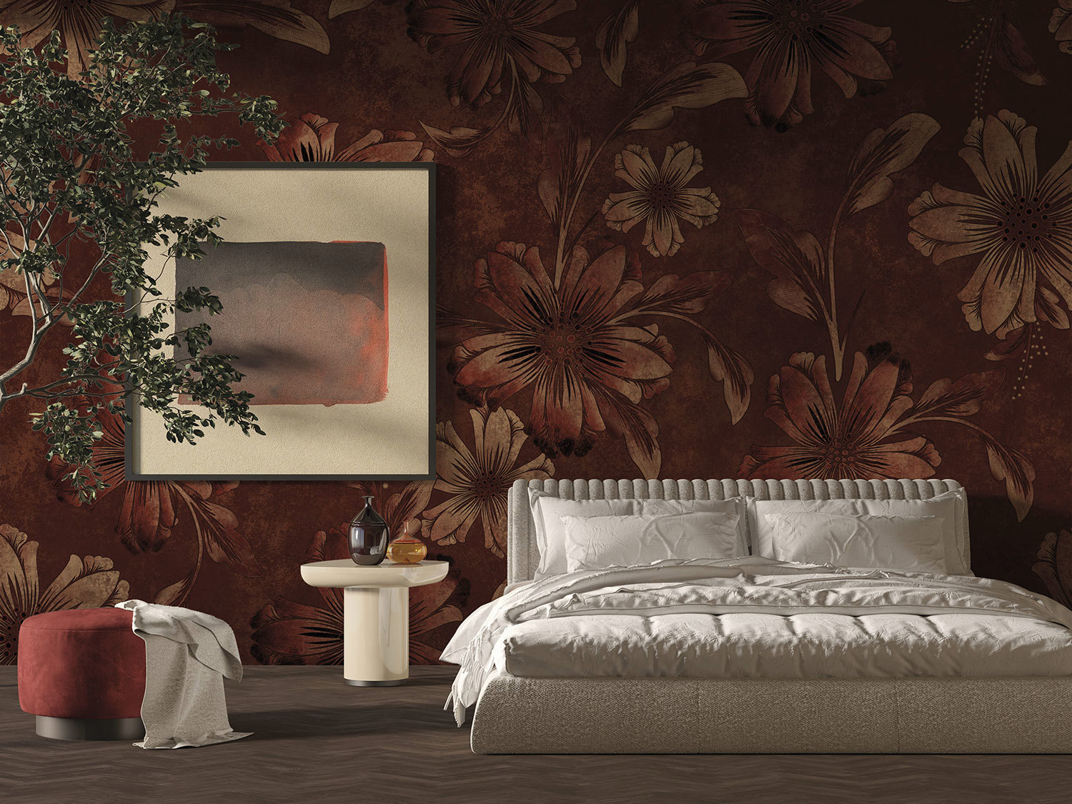 All wallpapers of The Daydreamer capsule collection are embellished by seductive textures, capable of creating a three-dimensional illusion and stimulating a new perception of space. Greatly impactful backgrounds, where the macro decoration takes the spotlight to transform the living spaces into theatrical wings, with precious decorations, waves of colour, intoxicating flowers, and patterns reminiscent of precious fabrics.