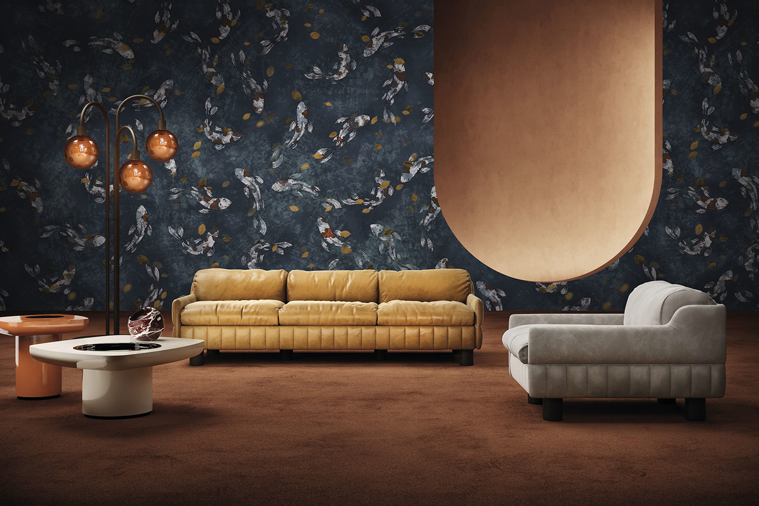 All wallpapers of The Daydreamer capsule collection are embellished by seductive textures, capable of creating a three-dimensional illusion and stimulating a new perception of space. Greatly impactful backgrounds, where the macro decoration takes the spotlight to transform the living spaces into theatrical wings, with precious decorations, waves of colour, intoxicating flowers, and patterns reminiscent of precious fabrics.