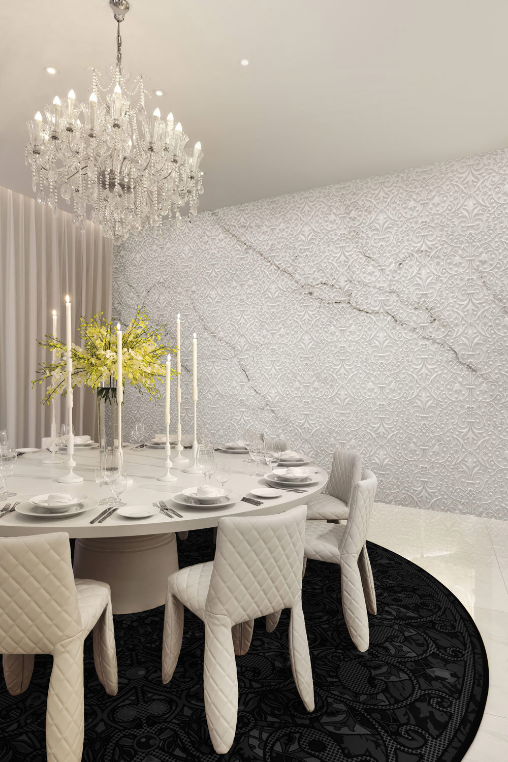 These wall coverings are a dimensional way to bring people on a journey. They transform any room into the exciting and immersive cultures and customs in the world,” says Marcel Wanders.