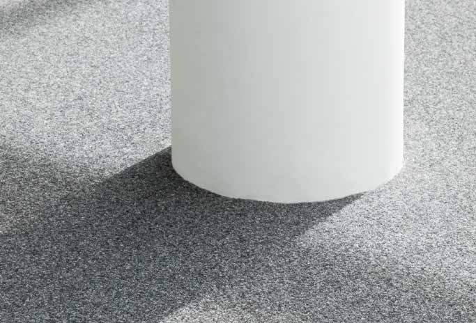 Solution-dyed fibres. Swiss Made, GuT seal, TüVprofiCert, class 33 suitable for chair castors in constant use, flame retardant with CE- and VKF certificate, electrically antistatic or conductive, direction-free, suitable for use in damp locations, with flame-extinguishing layer, also available as modules and acoustic flooring. Ten colour schemes.